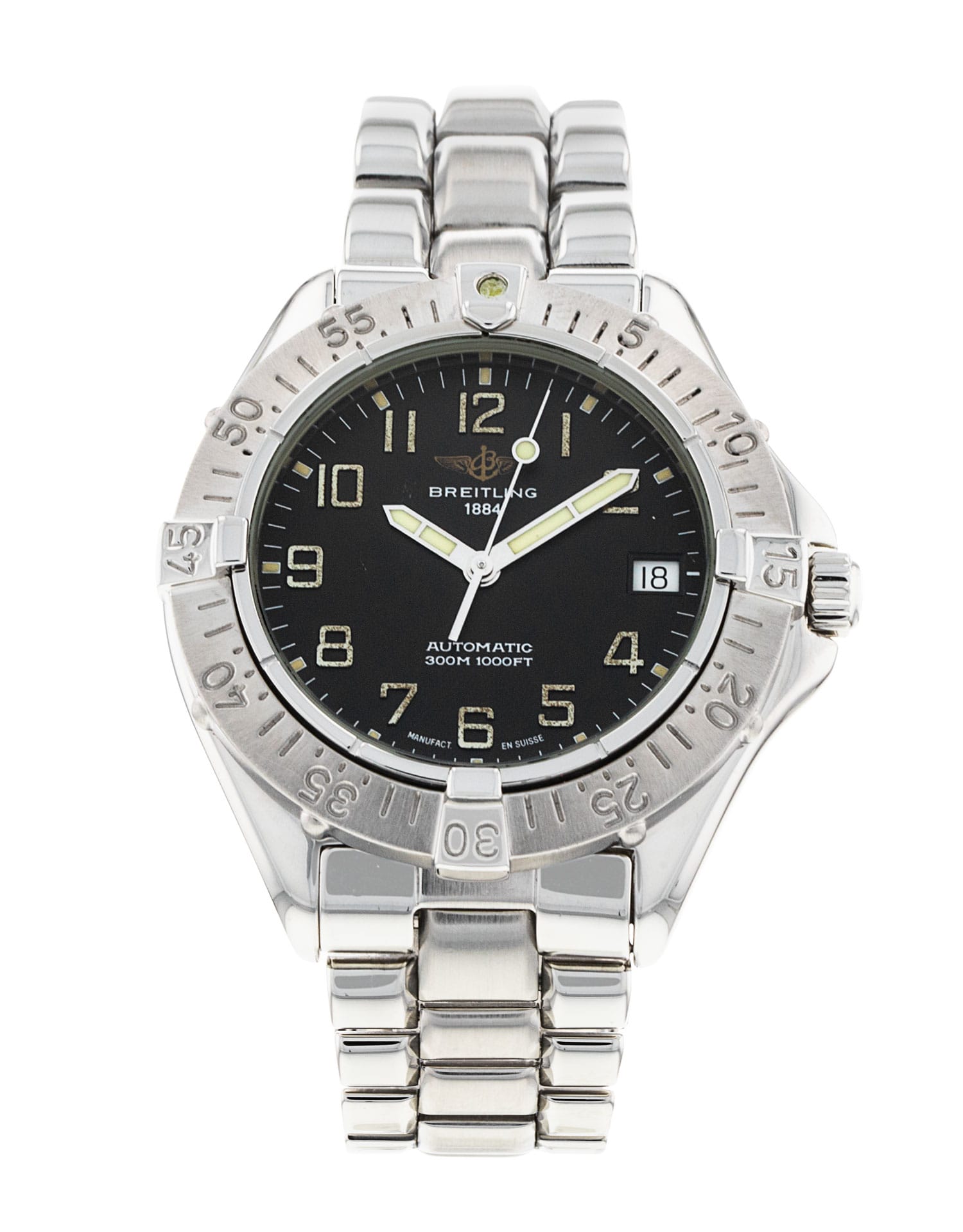 This Breitling Colt Auto A17035 has a black arabic dial and a bracelet strap. This Breitling has undergone a thorough inspection of water resistance, accuracy, functionality and condition to determine the level of reconditioning required to meet our strict standards. It has also been referenced against technical documents and manufacturer records where available to ensure authenticity and a clean history. All our watches have a 24-month warranty for your peace of mind.