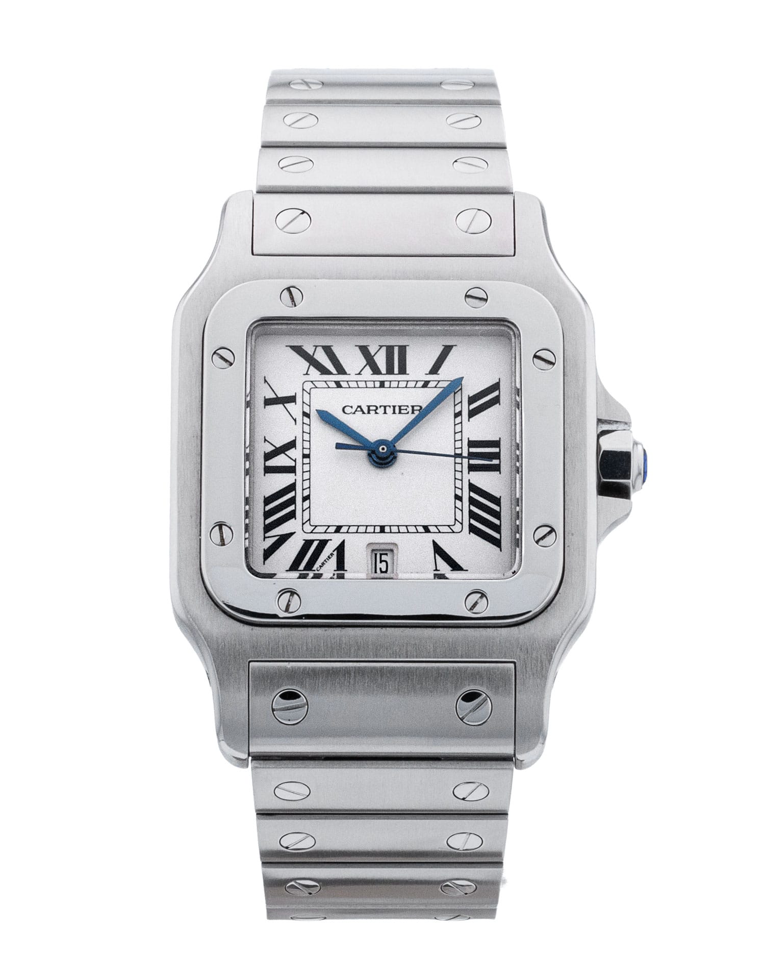 This Cartier Santos Galbee W20060D6 has a silver roman numeral dial and a bracelet strap. This Cartier has undergone a thorough inspection of accuracy, functionality and condition at our Cartier certified service centre to determine the level of reconditioning required to meet our strict standards. It has also been checked against our records to ensure authenticity. All our watches have a 24-month warranty for your peace of mind.