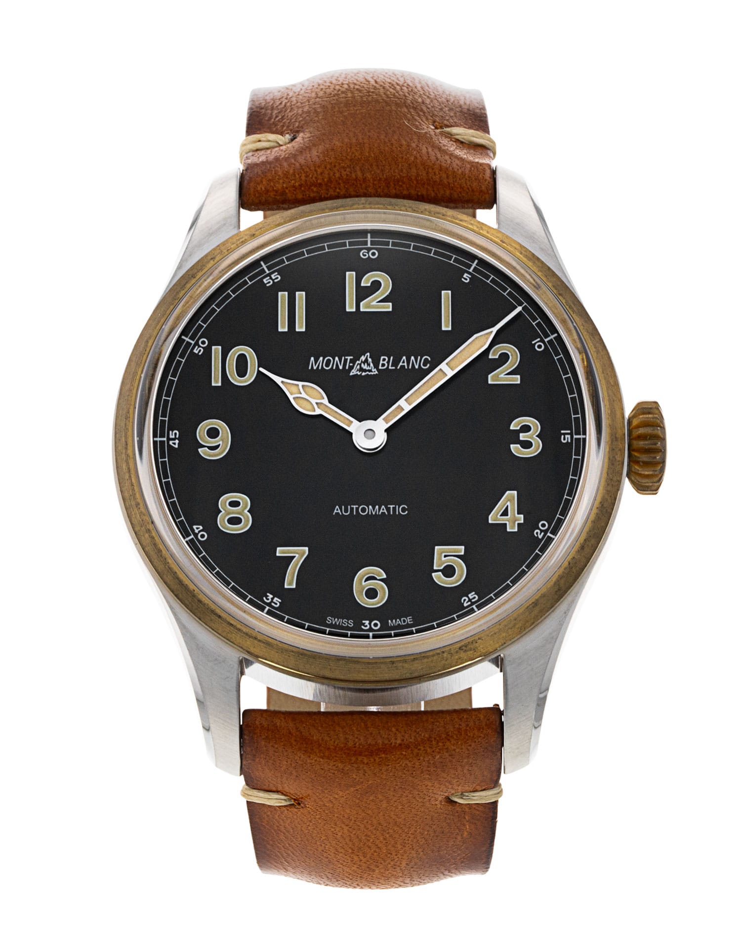 This Montblanc 1858 117833 has a black arabic dial and a leather strap. This Montblanc has undergone a thorough inspection of water resistance, accuracy, functionality and condition to determine the level of reconditioning required to meet our strict standards. It has also been referenced against technical documents and manufacturer records where available to ensure authenticity and a clean history. All our watches have a 24-month warranty for your peace of mind.