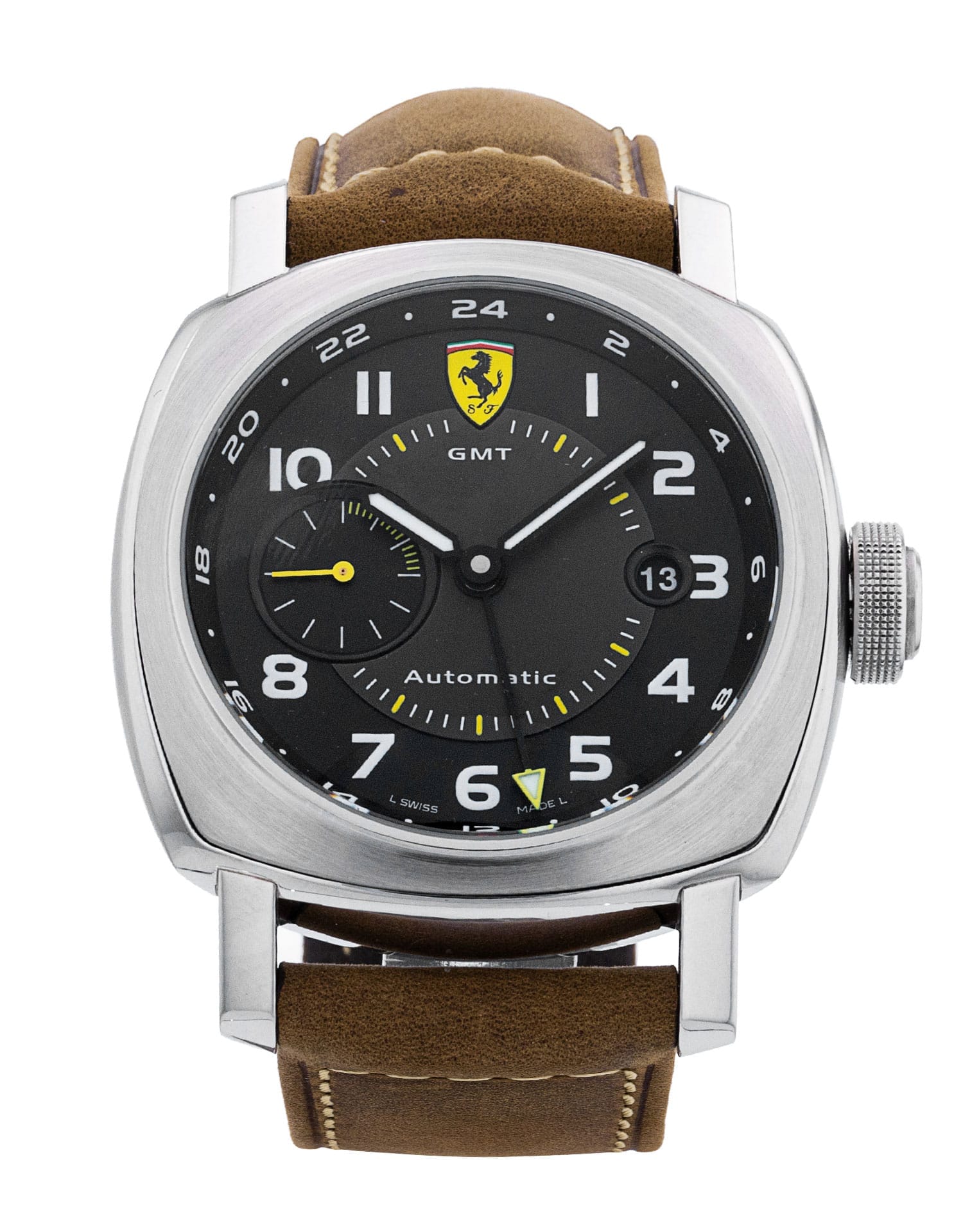 This Panerai Ferrari FER00009 has a black arabic dial and a leather strap. This Panerai has undergone a thorough inspection of accuracy, functionality and condition at our Panerai certified service centre to determine the level of reconditioning required to meet our strict standards. It has also been checked against our records to ensure authenticity. All our watches have a 24-month warranty for your peace of mind.