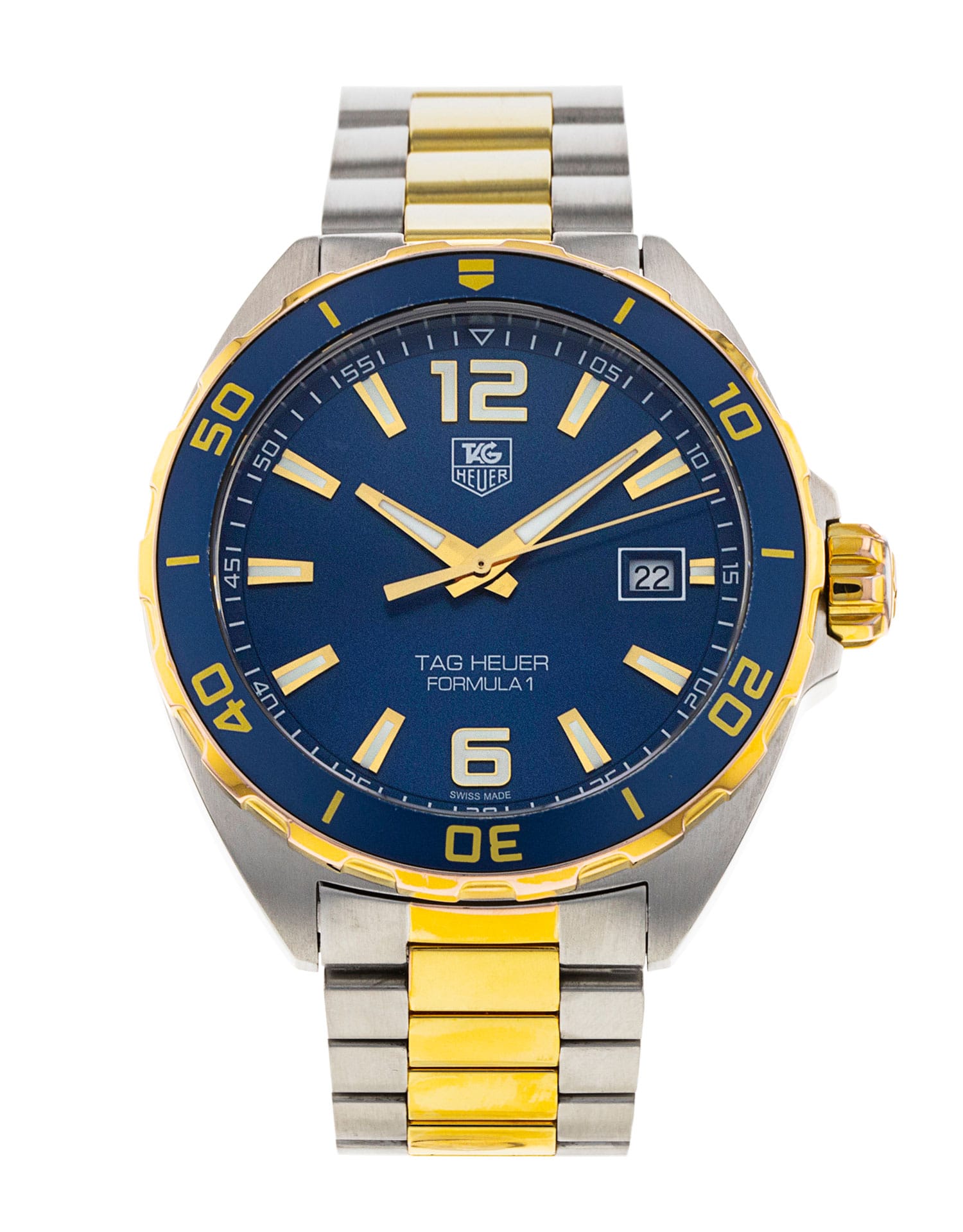 This Tag Heuer Formula 1 WAZ1120.BB0879 has a blue baton dial and a bracelet strap. This Tag Heuer has undergone a thorough inspection of accuracy, functionality and condition at our Tag Heuer certified service centre to determine the level of reconditioning required to meet our strict standards. It has also been checked against our records to ensure authenticity. All our watches have a 24-month warranty for your peace of mind.