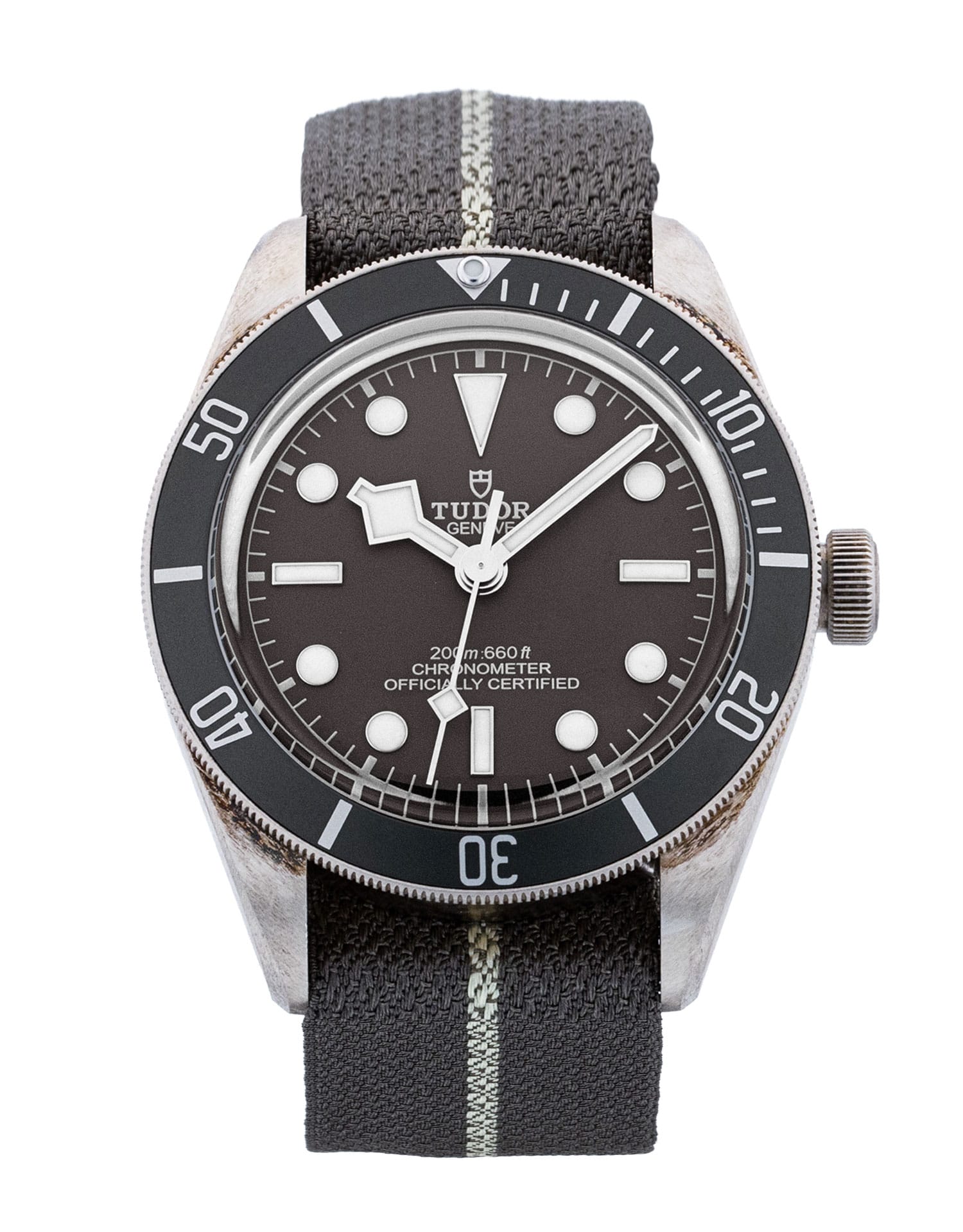 This Tudor Black Bay 58 M79010SG-0002 has a taupe dial and a fabric strap. This Tudor has undergone a thorough inspection of water resistance, accuracy, functionality and condition to determine the level of reconditioning required to meet our strict standards. It has also been referenced against technical documents and manufacturer records where available to ensure authenticity and a clean history. All our watches have a 24-month warranty for your peace of mind. One of our skilled polishing technicians has removed marks on the case and bracelet of this watch, brought about by daily wear and tear, which is why this watch does not come with the remaining manufacturer’s warranty.